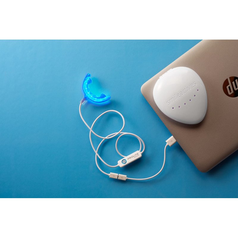 CAUTIONS: Smileactives products are not a substitute for regular dental care. Please visit your dentist regularly. For best results, refrain from eating or drinking for 30 minutes after finishing a whitening treatment. Smileactives products will only whiten your natural teeth, and will not whiten caps, veneers, crowns, fillings or dentures any whiter than their original color. Do not use the ProLite if you have braces or while wearing any kind of overnight dental appliance, or if you are pregnant or nursing. Some people may experience tooth sensitivity when using whitening products. Tooth sensitivity from whitening is temporary and is not harmful. This product is designed for use only by adults and persons over the age of 16. Store in a cool, dry place and keep away from direct sunlight. Read and understand all instructions before using. Do not stare directly into the ProLite LEDs when they are illuminated.