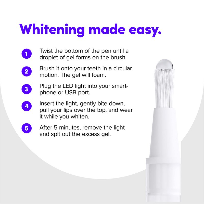 - Portable and easy to use – brighten wherever, whenever. Accelerates the power of our bright on premium teeth whitening. Low battery consumption.