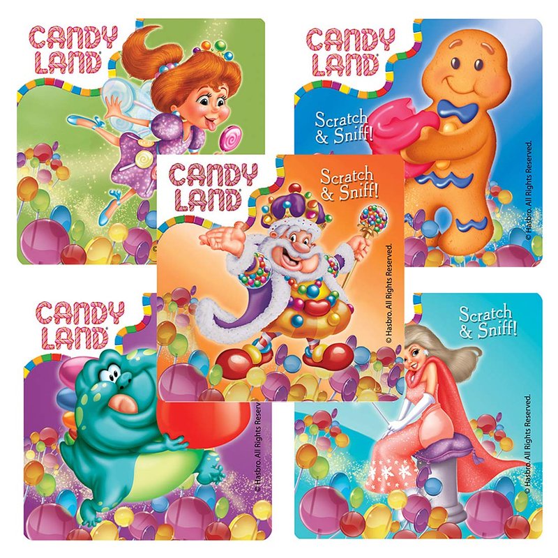 - King Kandy, Jolly, Princess Lolly and more are featured in this gumdrop scented Candy Land sticker assortment.