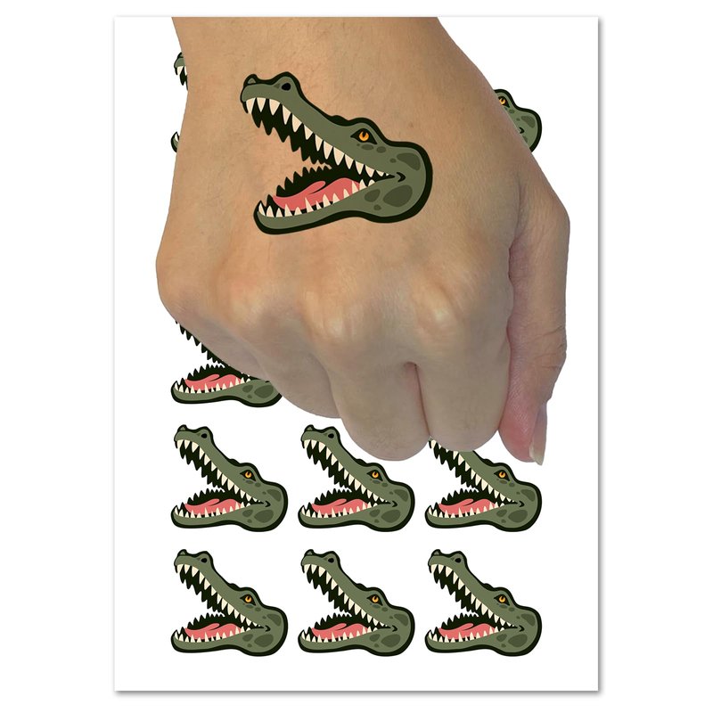 Smiling Toothy Crocodile Alligator Chomp Temporary Tattoo Water Resistant Fake Body Art Set Collection - 15 2" Tattoos (1 Sheet)