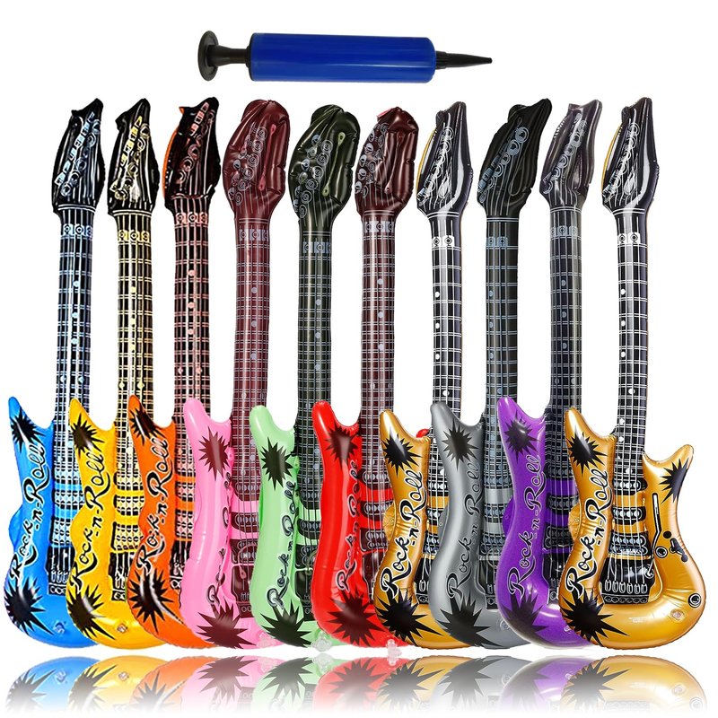 - Inflatable Party Props: You will get 11 inflatable toys, including 10 inflatable guitars and 1 inflator. Let's play these inflatable rock band instruments and start a fun learning experience