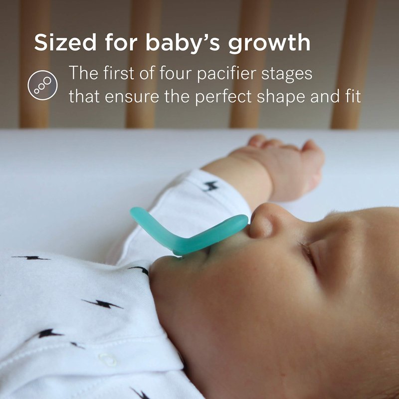 We teamed up with a leading Pediatric Dentist to develop a pacifier that supports a healthy dental development. The shape, fit, and response of a pacifier in your baby’s mouth influence how their palate develops and, ultimately, how their teeth will come in. Other baby binkies may collapse during soothing which can cause the palate to cave-in over time, also known as cross-bite. Our anatomical shape helps prevent this problem by expanding slightly during soothing. This flex and response helps support the palate and the development of wide, healthy grins.