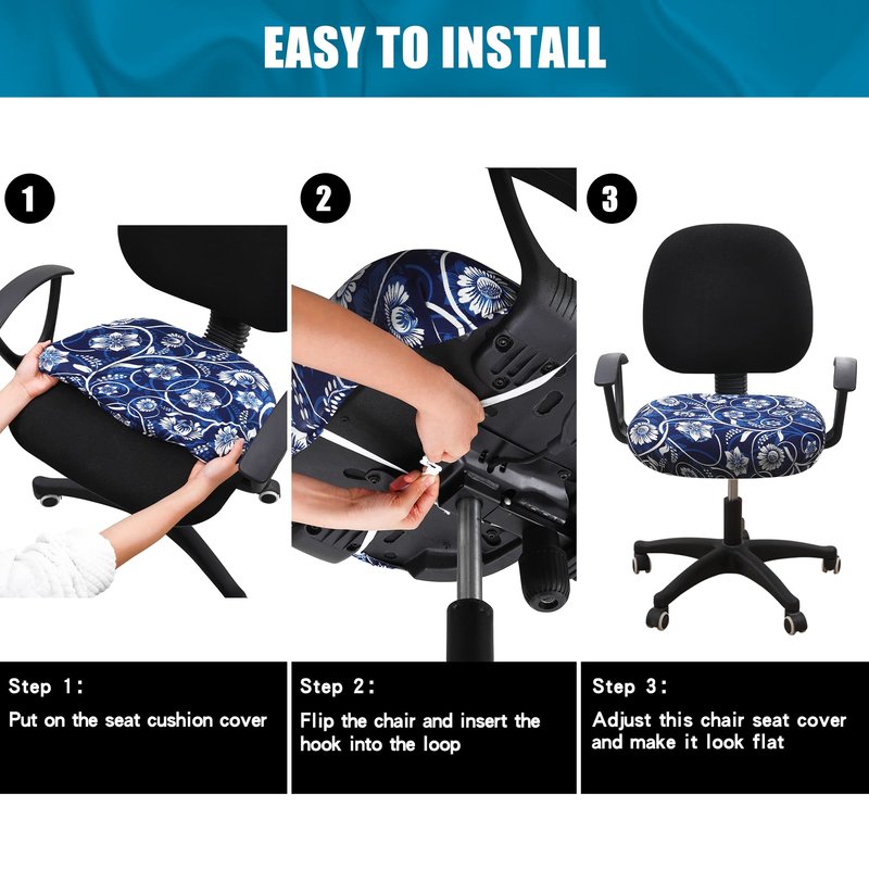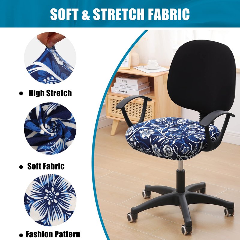 Smiry Printed Office Computer Chair Seat Covers, Stretch Fit Universal Desk Rotating Chair Cover Washable Removable Seat Cushion Protectors - Navy Blue