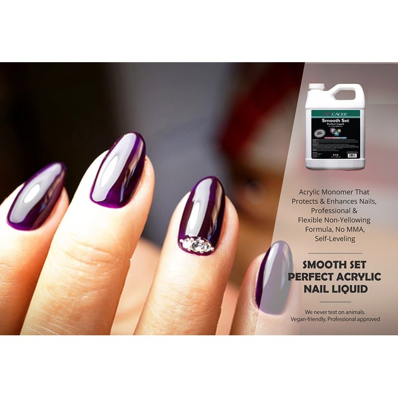 - TRY THE KIT TODAY: Cacees Smooth Set Perfect Liquid effectively eliminates ratio sensitivity so you can work wetter, and faster. With this self-leveling monomer, you can create smooth ombre designs, crisp smiles lines, detailed 3D nail art, and more! This MMA free monomer has superior flexibility and non-yellowing, non-brittle quality with exceptional adhesion and self-contouring performance.