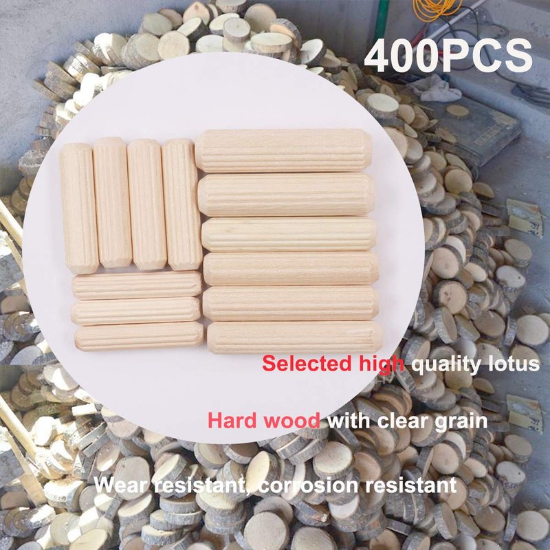 smseace 400PCS Straight Groove Wooden Dowel Pins with Tapered End with Bevel Angle, 1/4 "5/16" 3/8 "(6mm, 8mm, 10mm) Wooden Dowel Pins, Used for Crafts, Furniture, DIY Manual, Etc.MD-4S-400P