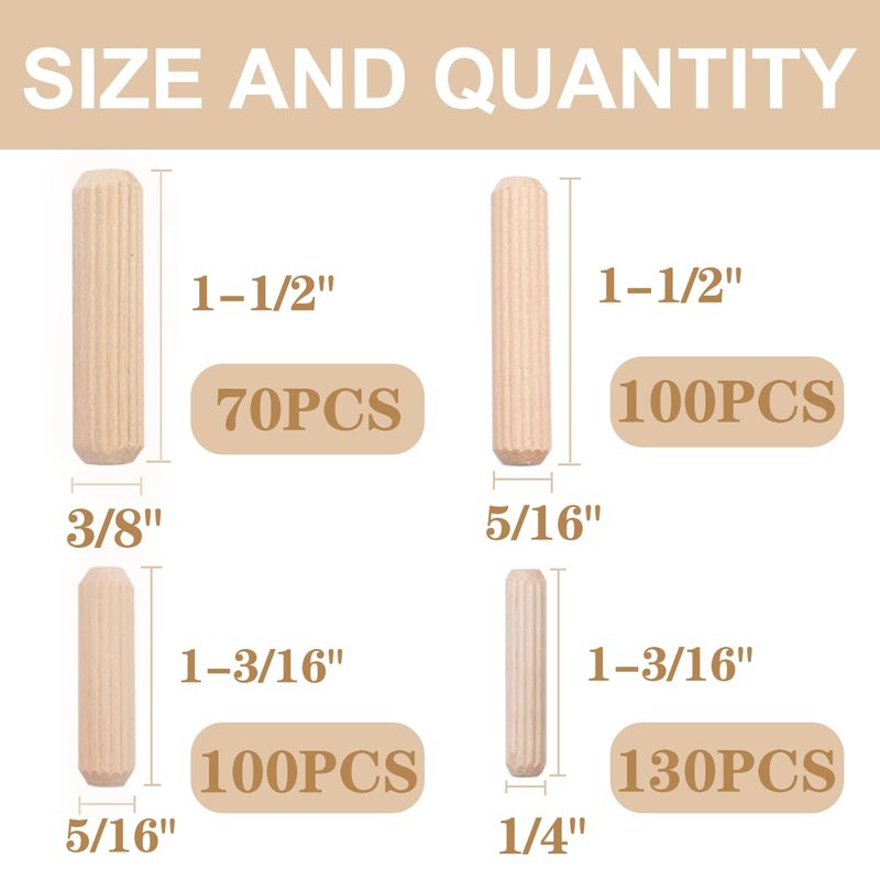 - Straight grooved wooden dowels are made of high-quality lotus wood, which is strong, high in density and not easy to break.
