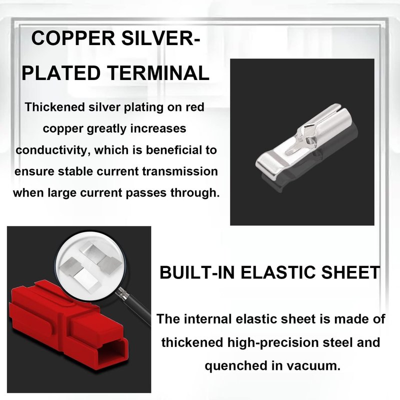 - ✅Well made and fits perfectly:You will receive 40pcs Quick Disconnect Power Terminals Connectors(10pcs red housing, 10pcs black housing, 20pcs 30A silver plated copper contacts)Stainless steel springs create a robust force between the contracts that holds the connector in the mated condition, and allows it to be quickly disconnected.
