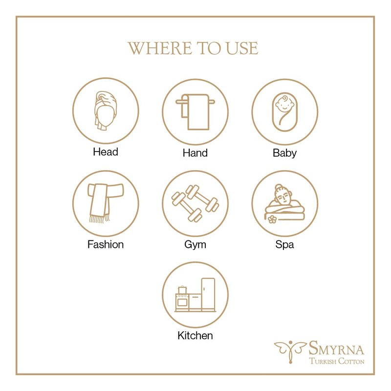- MULTI-PURPOSE – Smyrna Turkish Cotton hand towels are decorative and very useful in various places such as; bath, kitchen, bathroom, SPA and fitness. It can also be used as tea, guest, face, hair, dishcloth, gym, yoga and travel towel. You will never believe how functional this natural fabric is..
