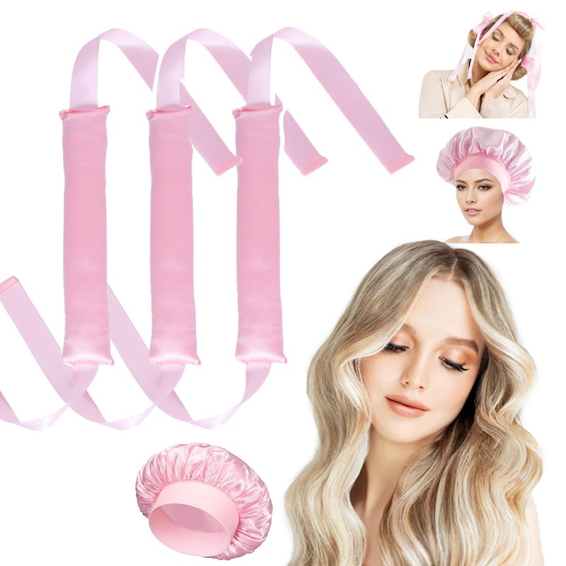 SNAIL GARDEN 3 PCS heatless curlers &1 PCS Sleeping Bonnet Set,Overnight Blowout Rods for Long Hair,Satin Hair Curlers No Heat Heatless Curling Rod with Ribbon Design for Women Teenage Girls