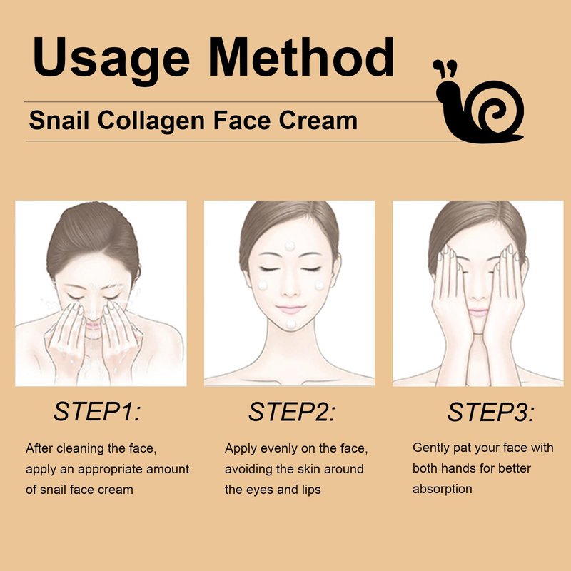 - [Use Suggestion]: After cleansing in the morning and evening, take the appropriate amount of snail essence cream and gently massage it into the skin with your fingertips until it is absorbed