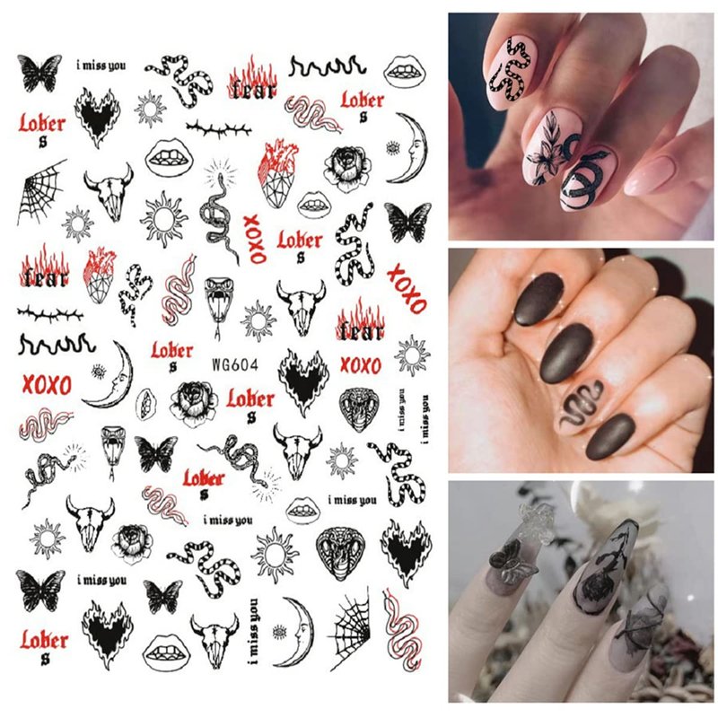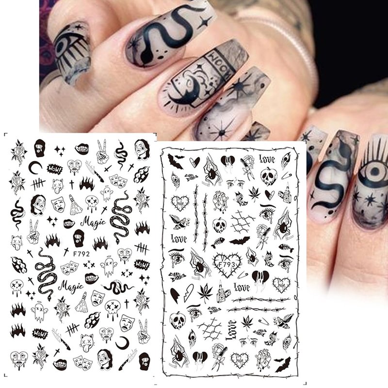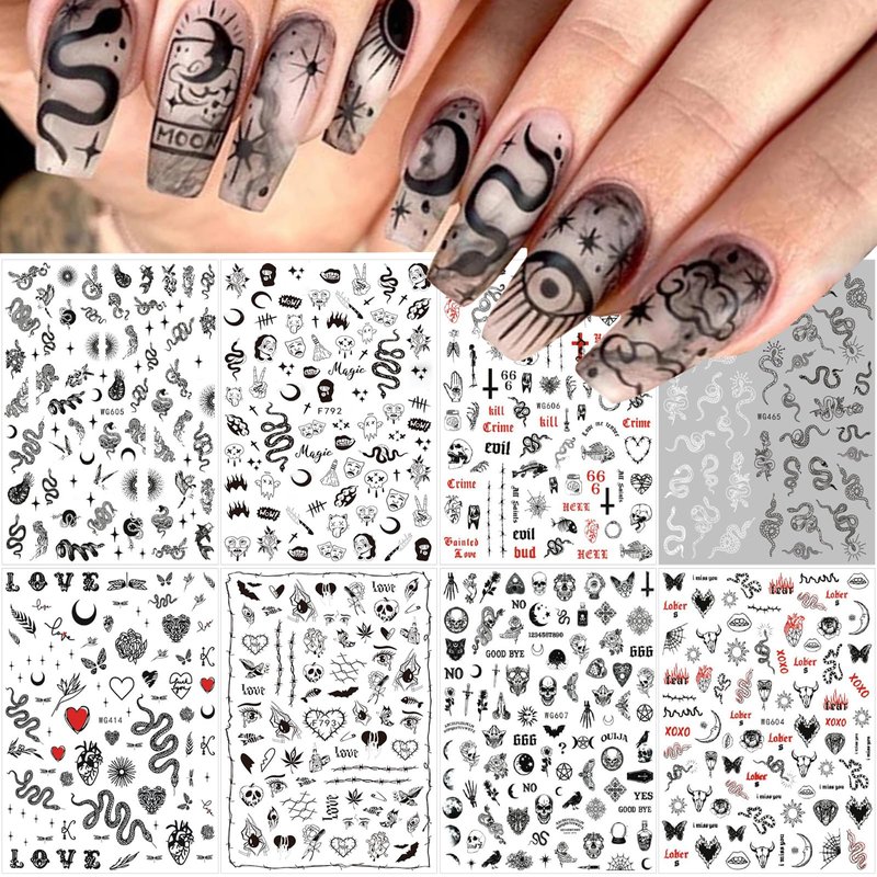 - Quantity: You will get 8 Sheets Black Skull Goth nail art stickers,3D self-Adhesive luxury Design which can offer you multiple choices, and satisfy your rich imagination of nail DIY.