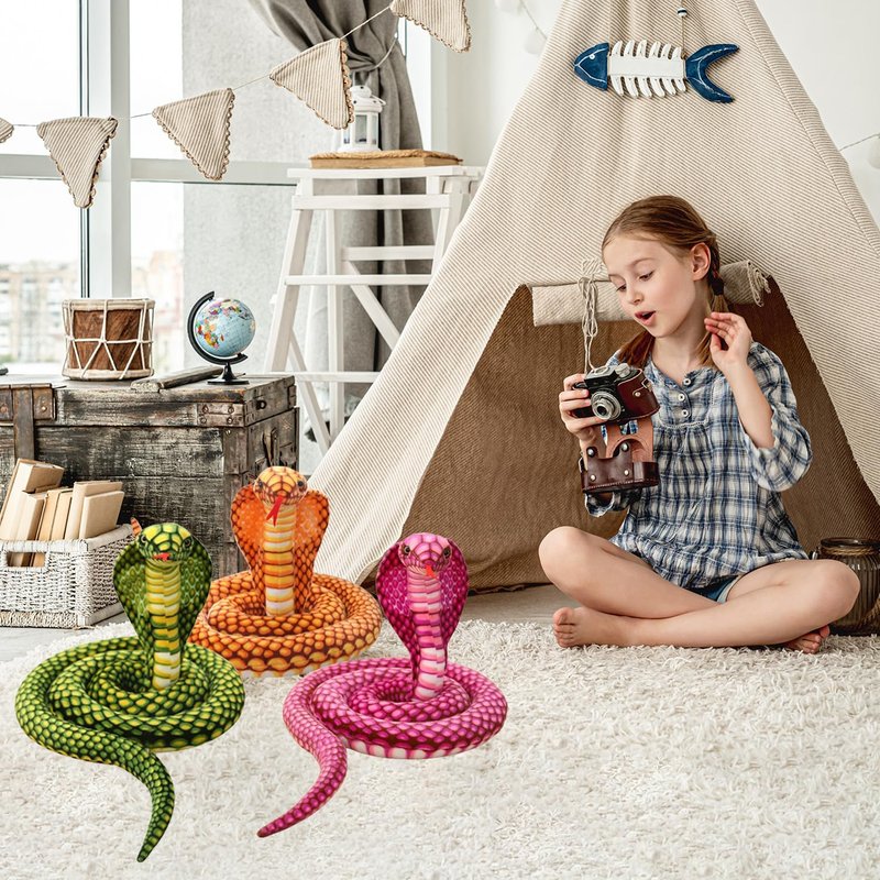 - Multiple Uses: This plush snake can be used as a toy, plush decoration, or gift. The cobra plush is suitable for placing on sofas, living rooms, car seats, etc. It can also be used as a gift for Halloween, birthdays, and animal-themed parties.