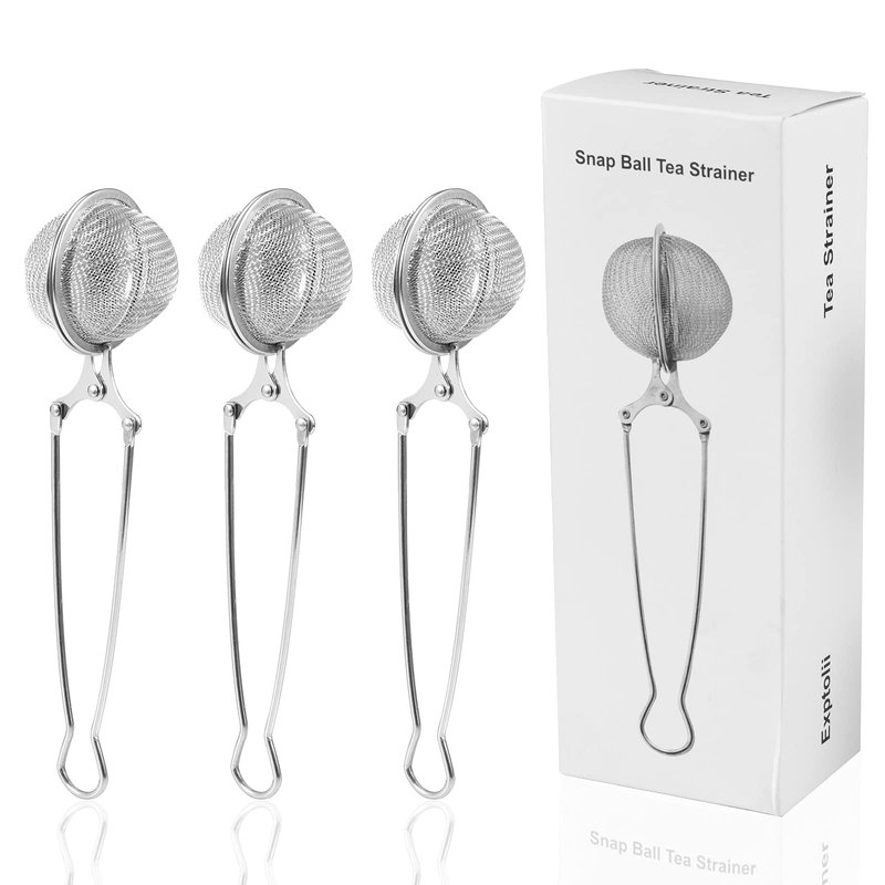 Snap Ball Tea Strainer, Exptolii 3 Pack Stainless Steel Tea Infuser Filter with Handle for Loose Leaf Tea, Spices, Seasonings