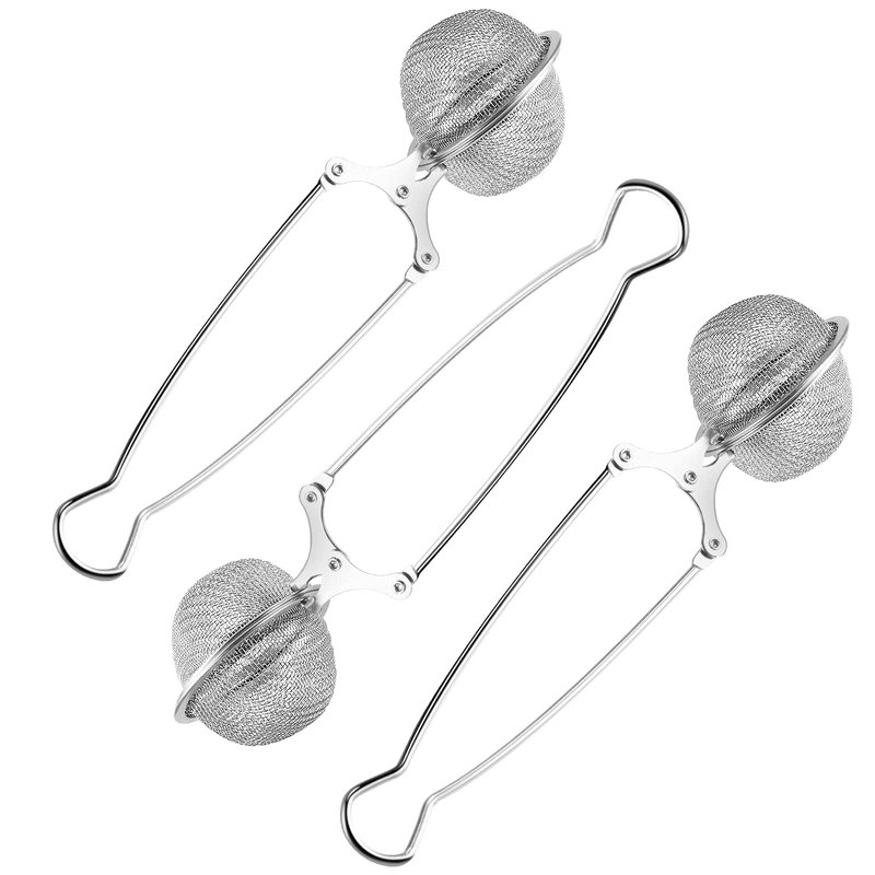 3 Pack Stainless Steel Snap Ball Tea Strainer Infuser Filter with Handle for Loose Leaf Tea, Spices, Seasonings