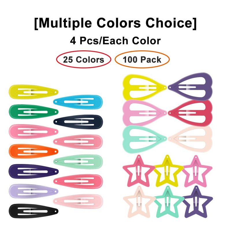 - [Multiple Choice]: Total 100 pcs, 13 colors solid clips, 6 colors heart-clips, 6 colors little Star, each color 4 pcs