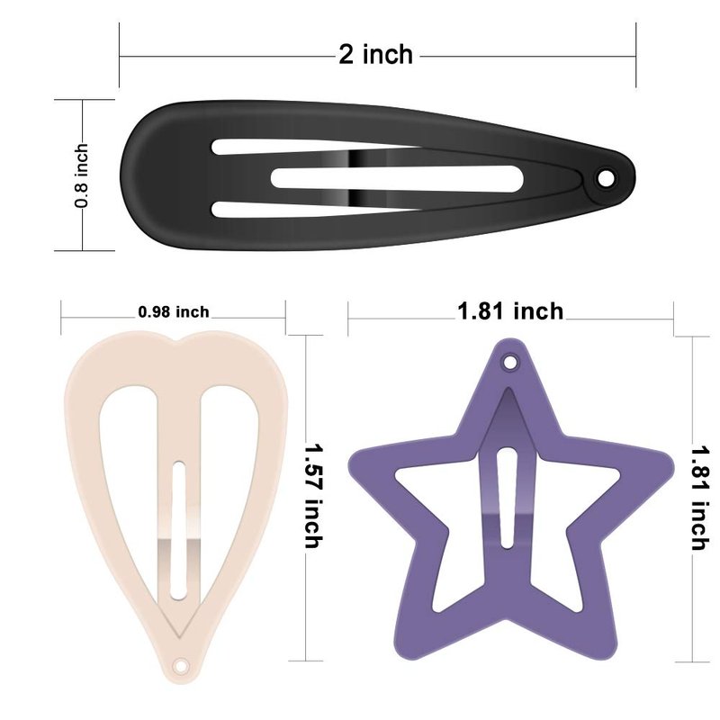 - [Nice Size]: solid 2.'', Heart 1.57'', little Star 1.81'', the size clips works for Girls, Toddlers, Kids, Women and etc.
