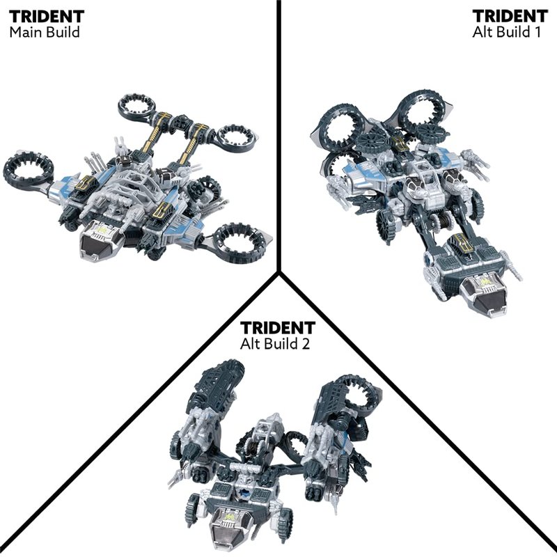 - ACTION PLAY -- The Forge crew of 2Bells, Dee La and Klik pilot and man the weapons for Trident. Trident features rotating engines, modular deployment drones and a powerwinch