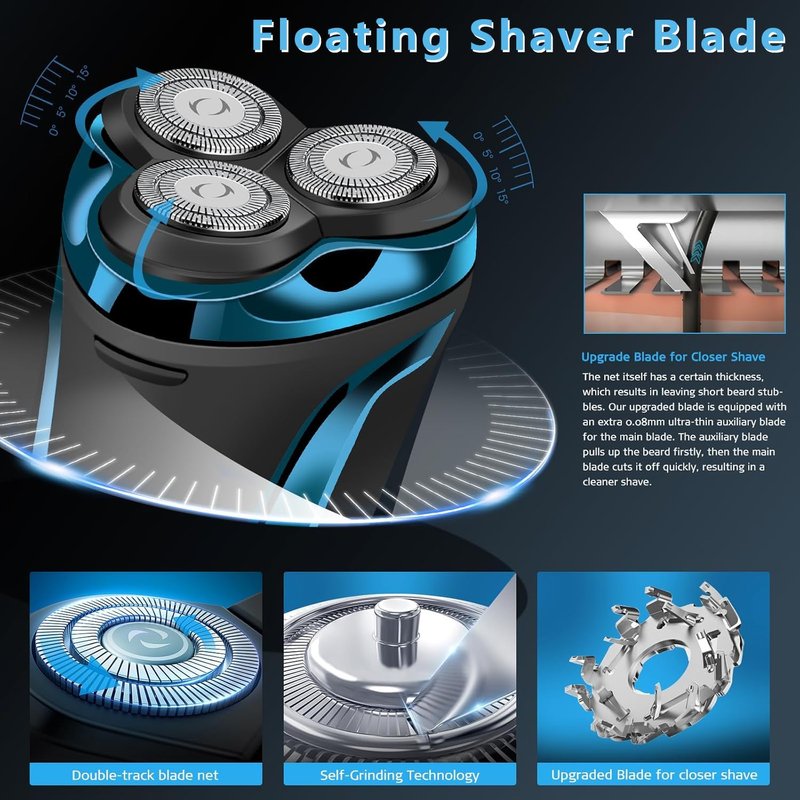 - 4D Rotary Shaving Technology:Experience a smooth, close shave with the Electric Razor's innovative 4D rotary floating head. It effortlessly follows the natural contours of your face, neck, and jawline, ensuring a precise shave without irritation. Perfect for sensitive skin