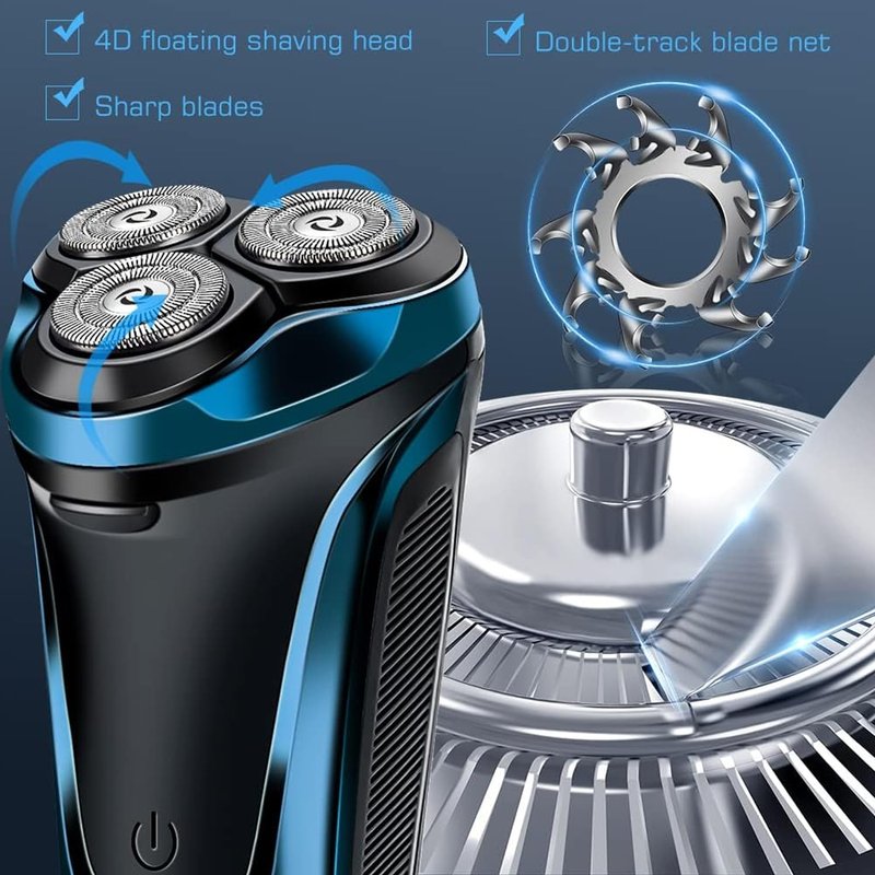 Snapbuy Electric Razor for Men, Snapbuy Electric Razor Pro of Father, 4D Floating Head Rotary Shaver, Ipx7 Waterproof Electrical Razors, Wet & Dry Fast Charging Electrical Shaver LCD Display (Blue)