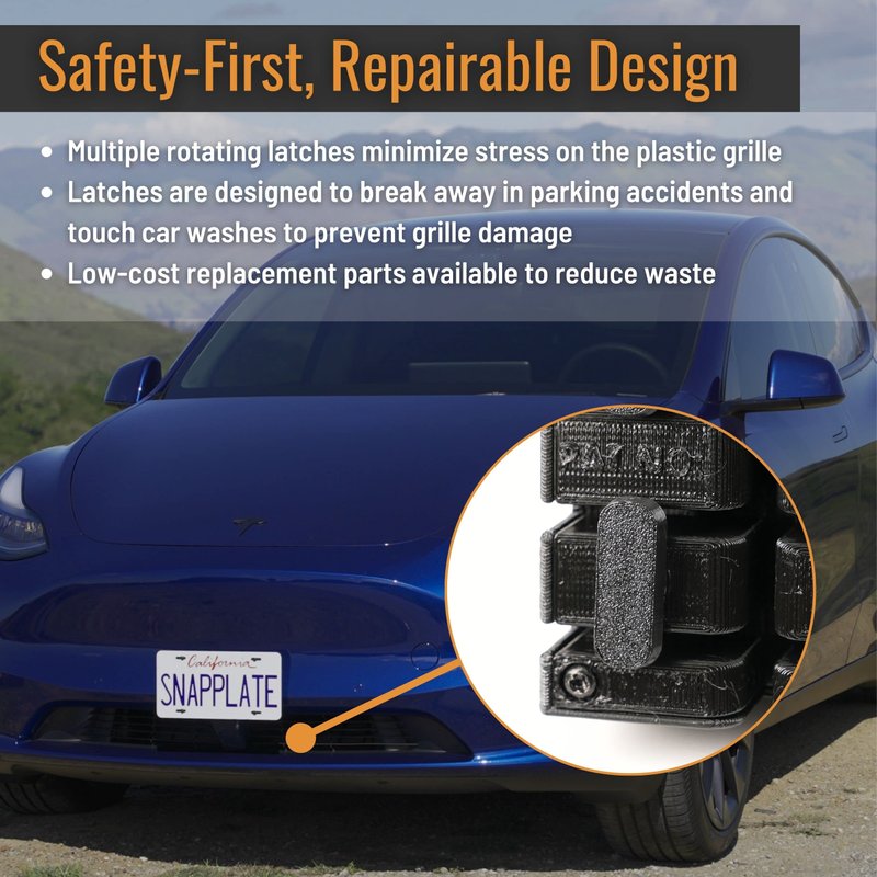 SnapPlate® Front License Plate Holder for Tesla Model Y - Safety-Optimized Breakaway Design, Anti-Theft, Removable, Height-Adjustable, USA Made and Patented