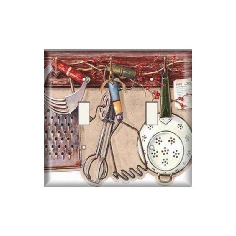 SnazzySwitch Kitchen Utensils Decorative Light Switch Cover - Double Toggle Wall Plate
