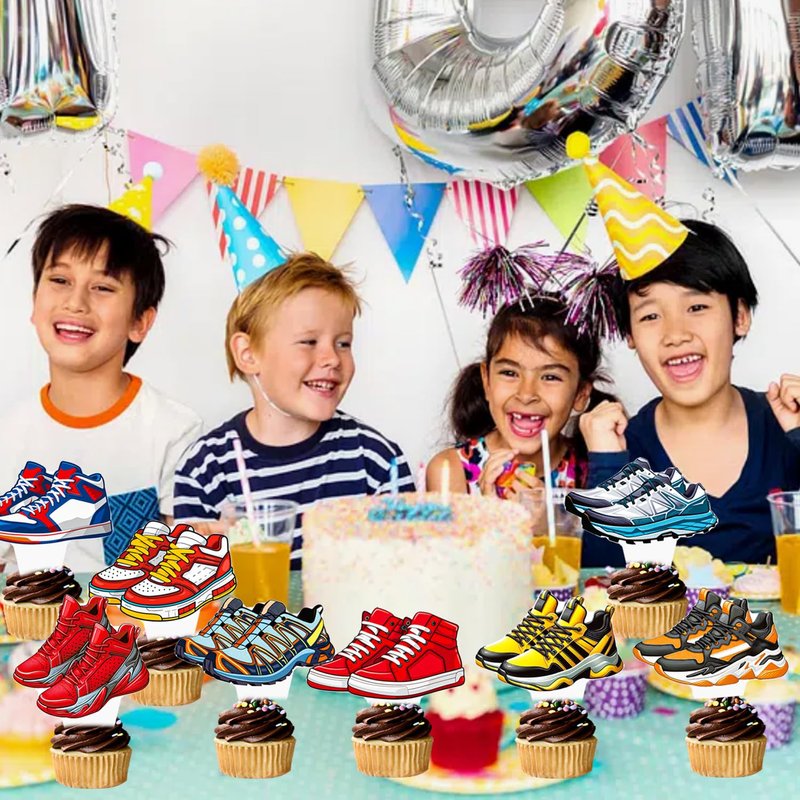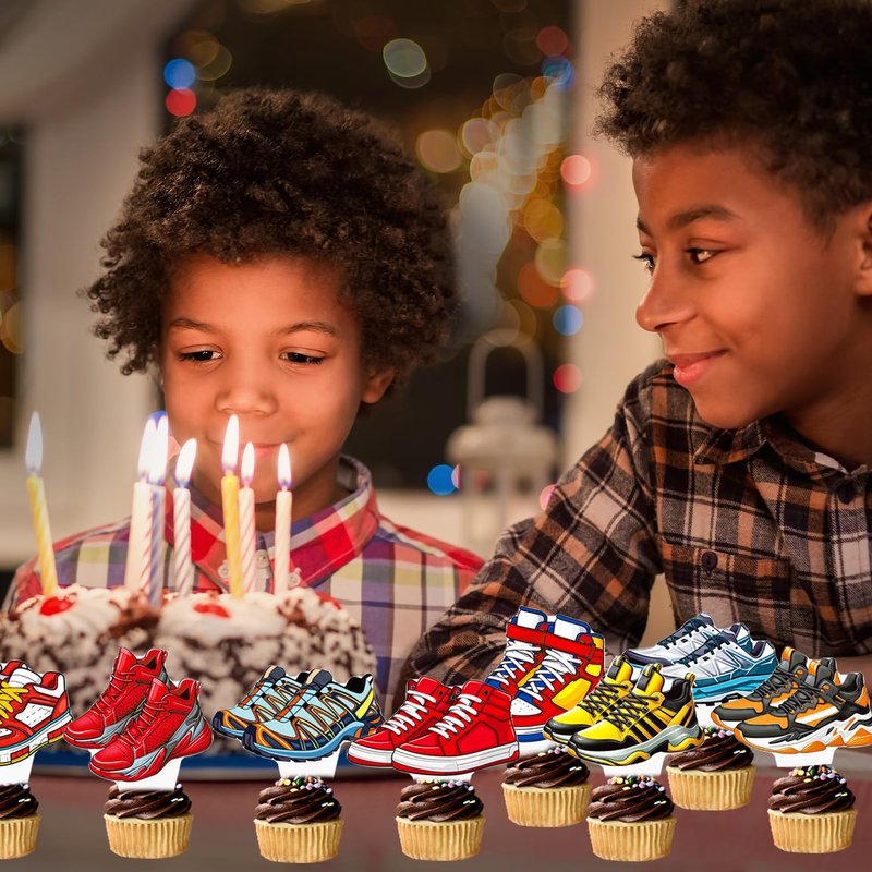- Save time:These sneaker birthday party supplies are no assembly or DIY required. Decorate your desserts without waiting, such as birthday cake, cupcake, cookies, muffin, cheese, pudding and so on. Make your food look stunning