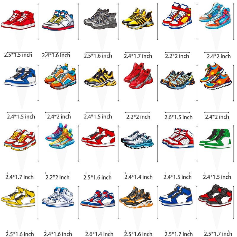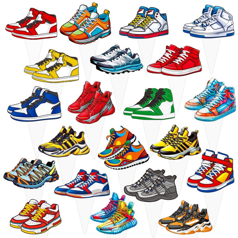 - 24 Colorful sneaker designs:This sneaker party cake decoration includes 24 different sneaker shoes styles. Each sneaker has a unique color to bring cool atmosphere. Great for a sneaker lovers' party