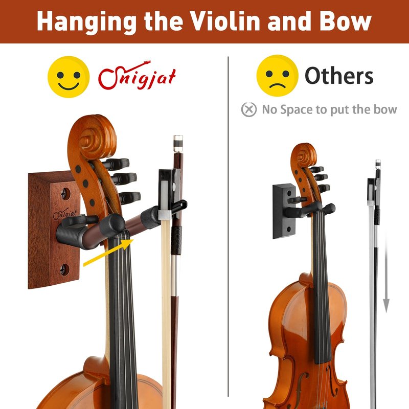 - 🎻Exquisite workmanship: This violin wall hanger with a bow hook comes in a premium brown color. The hook surface is covered with matte rubber, presenting an elegant and delicate texture. Each wooden base is hand-polished by a carpenter for a smooth surface that feels comfortable to the touch. With this stylish violin wall mount, you can hang your instrument in your bedroom, living room, music room, or studio.