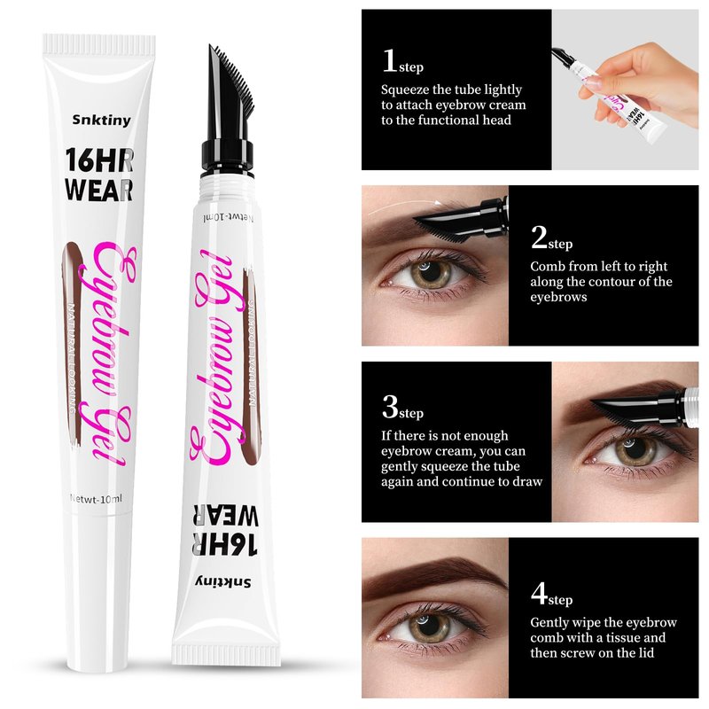 - This eyebrow gel brush can instantly thicken your eyebrows and shaping, keep them for about 16 hours, allowing you to create unlimited eyebrows