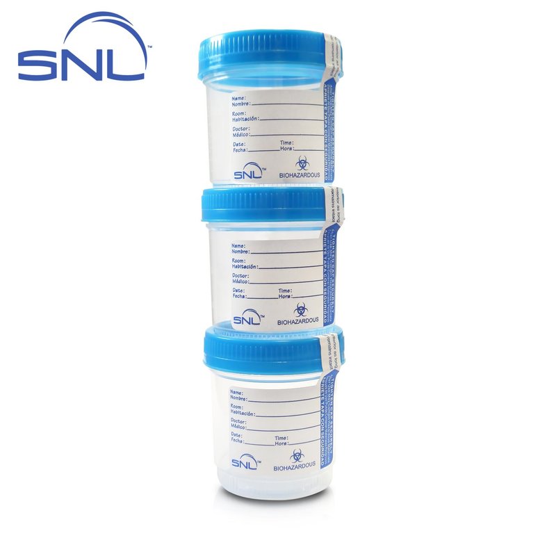 SNL Quality Sterile Specimen Cups, Screw-on Cap with Tamper Evident Seal, 3oz., Blue Cover - Pack of 3