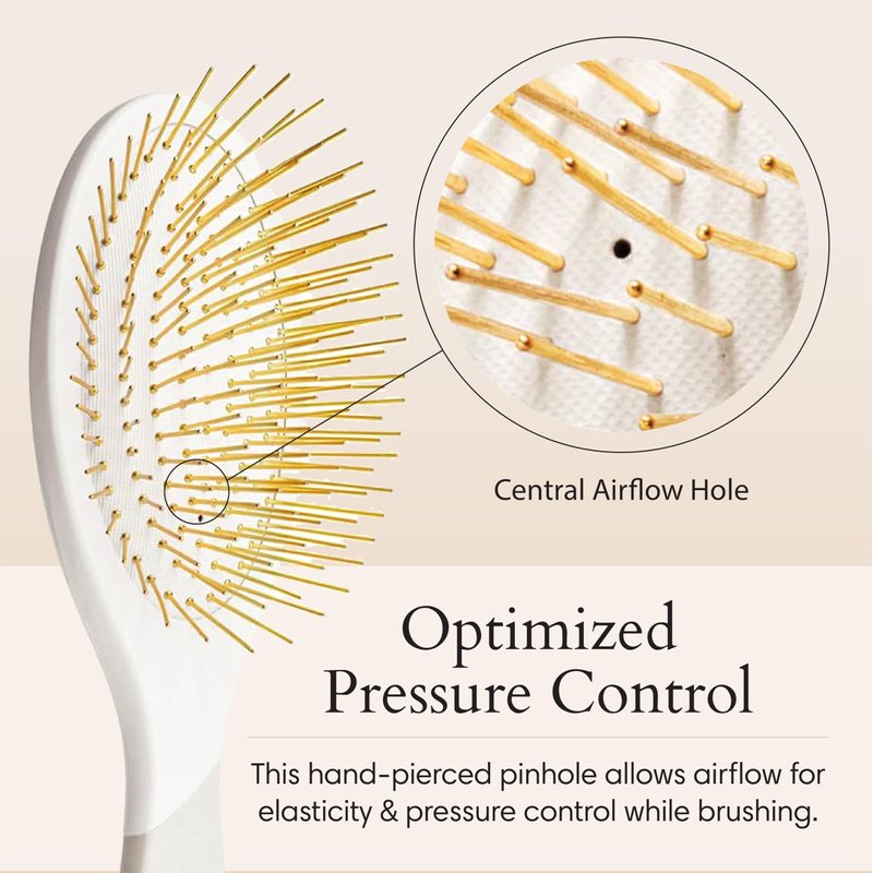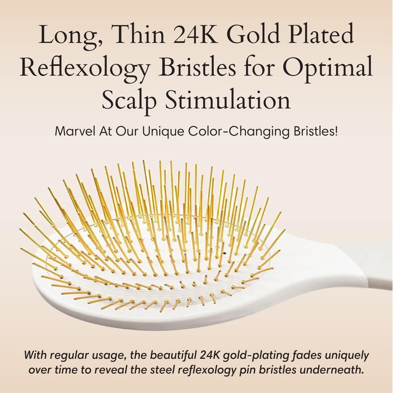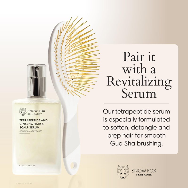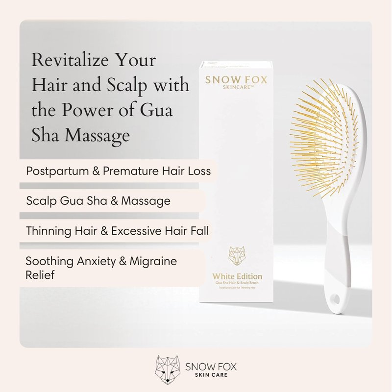 Snow Fox Skincare Gua Sha Hair Brush - White Edition. Scalp Massage Comb with Gold-Plated Metal Bristles for Healthy Follicles. Soothing Gua Sha Acupressure Tool for All Hair Types