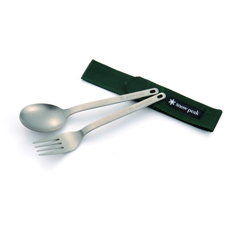 Snow Peak Titanium Fork & Spoon Set - Ultralight & Portable Camping Utensil Set - Durable Titanium Cutlery with Canvas Travel Case