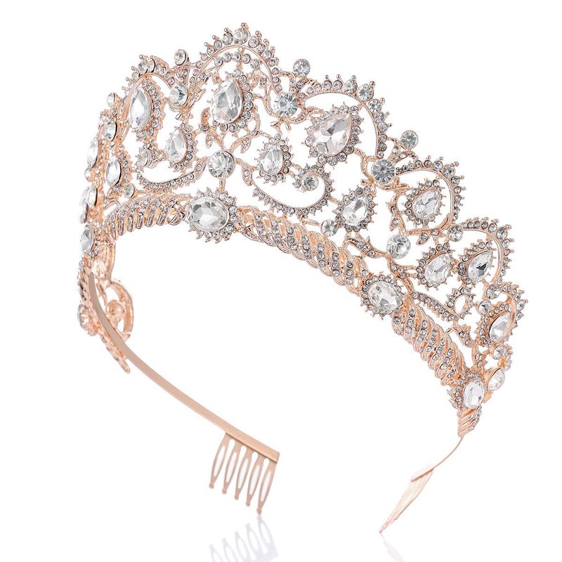 SNOWH Wedding Tiaras and Crowns - Rhinestone Bridal Crown Princess Tiara - Jewelry Headpieces with Comb for Women and Girls, Rose Gold