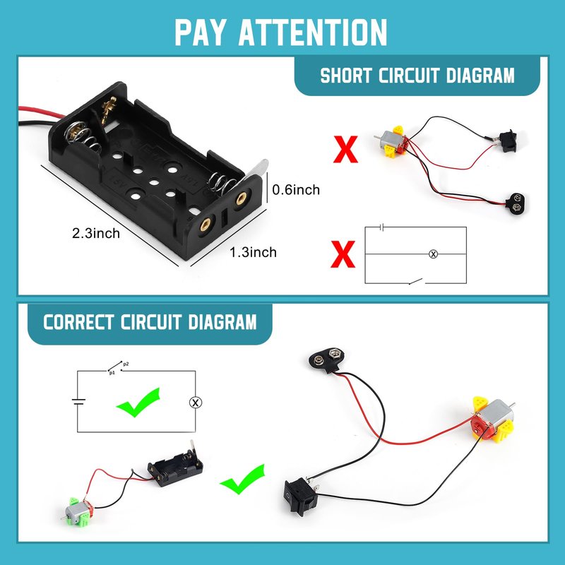 - Prioritizing safety: Our circuit kit is designed for users aged 8 and above, with adult supervision recommended during use. To prevent potential scalding from short circuits, it's important not to combine old and new batteries or different battery types. We advise using 3V batteries and limiting usage to 3 minutes at a time. Please note that after 5-10 minutes, the circuit may heat up, increasing the risk of a short circuit