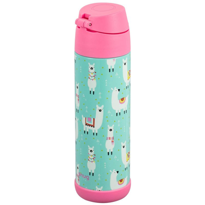 Snug Kids Water Bottle - insulated stainless steel thermos with straw (Girls/Boys) - Llamas, 17oz