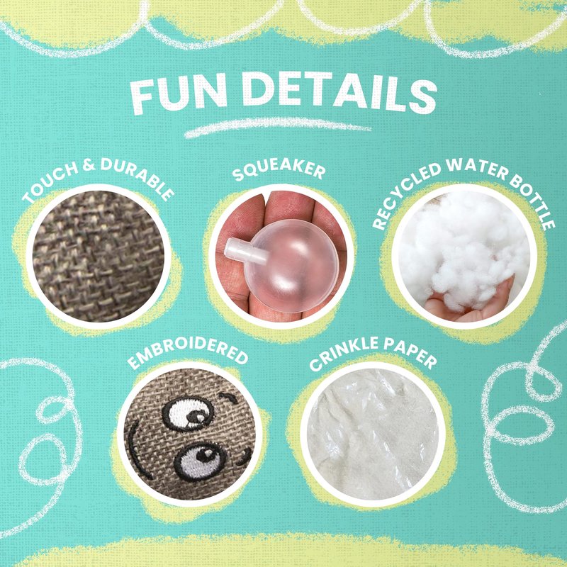 - Squeaker & Crinkle Sounds: Features exciting squeaker and crinkle sounds to engage and entertain your dog during playtime.