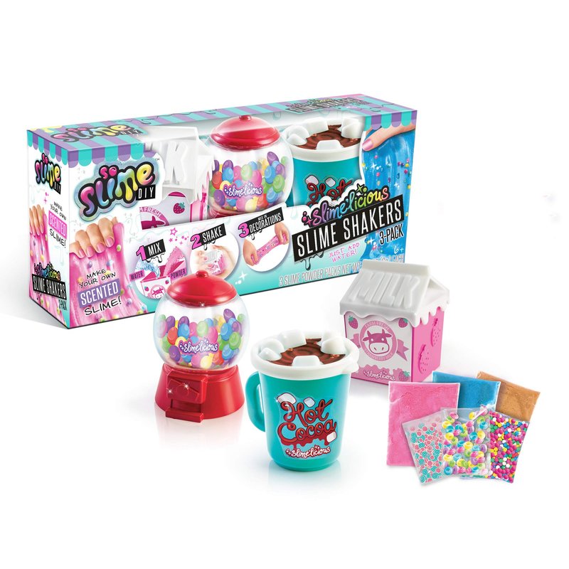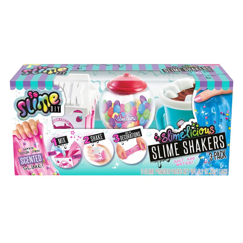 - This 3-pack slime making kit includes 3 different collectible slime shakers and 3 styles of so-sweet slimes: bubble gum, hot cocoa, and strawberry milk with cereal.