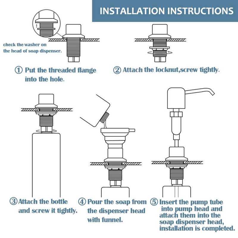 - ✅EASY TO INSTALL -- Our dish soap dispenser is extremely easy install in any type of kitchen sink or countertop just a few short minutes( granite,stainless steel,wood ),and simply remove the dispenser head and refill with liquid soap