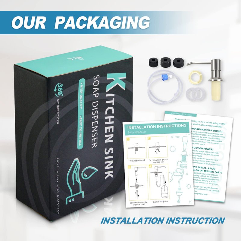 - 【High Quality】This kitchen soap dispenser is made of durable 304 stainless steel and ABS plastic, it is acid-resistant and corrosion-resistan,food-grade silicone tube is soft and elastic.Pump can rotate 360 degrees all directions.( Attention: Remember to measure the thickness of your countertop before placing the order ).