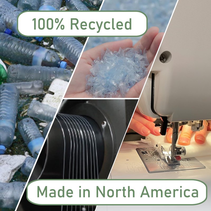 - Made with recycled polyester from 100% recycled plastic bottles, diverted from oceans and landfills. Made in North America.