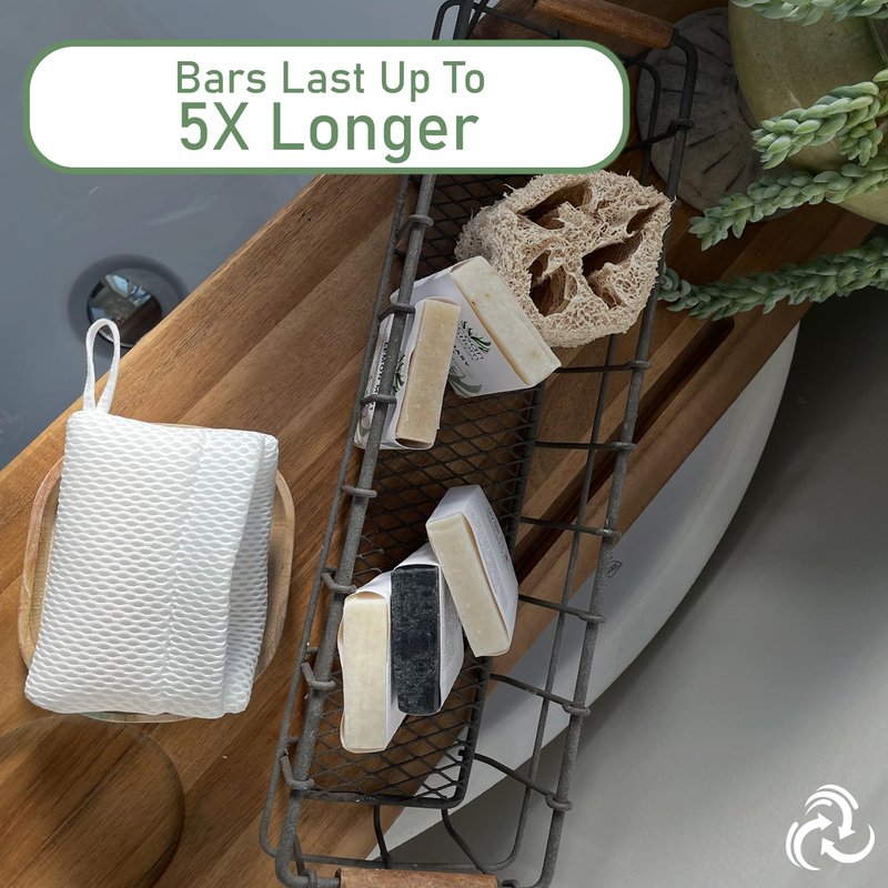 - FITS ALL SIZES OF BAR SOAP - our soap saver bags are stretchy - the 3D mesh design allows it to stretch around any shape and size of bar soap. Do you use extra-large artisan soap bars? Upgraded in spring 2024, we increased our size by 1 inch to allow for extra-large artisan soaps (cold processed soap, hot melt soap, natual soaps, shampoo bars, and more!). Tested with over 200 varieties of soap to verify maximum fit and compatibility. It's meant to stretch and hold tight to get a good grip on your bar soaps instead of having a loosely fit bag.