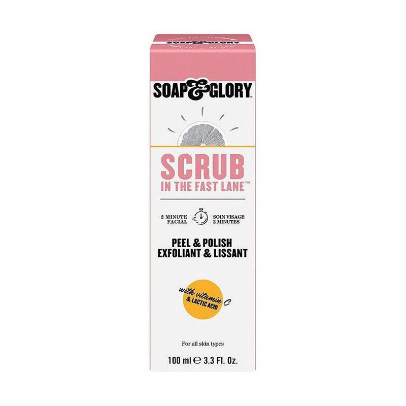 Soap & Glory Peel & Polish Two Minute Facial - Exfoliating Face Scrub with Vitamin C - Citrus Scented Skin Brightening Face Exfoliator with Lactic Acid & Salicylic Acid (100 ml)