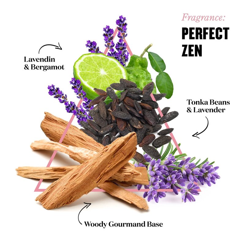 - Scented Body Oil - Scented with Perfect Zen, including lavender and tonka bean to help you feel relaxed and prepared for sleep. This bath oil is enriched with vitamin E oil and grape seed oil.*