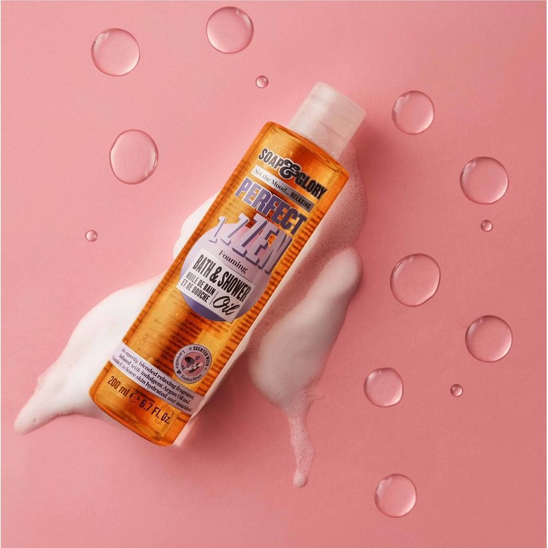 Soap & Glory Perfect Zen Nourishing Bath & Shower Oil - Lavender Oil & Tonka Bean Scented Body Care - Vitamin E & Argan Oil Body Moisturizer - Foaming Bath Oil (200ml)
