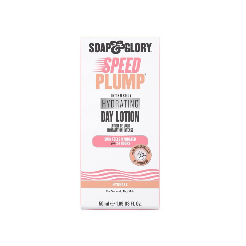 Soap & Glory Speed Plump Intensely Hydrating Day Lotion Moisturizer - Shea Butter & Coconut Oil Face Moisturizer for Dry Skin - 24 Hour Hydrating Lotion with Hyaluronic Acid & Vitamin B (50ml)