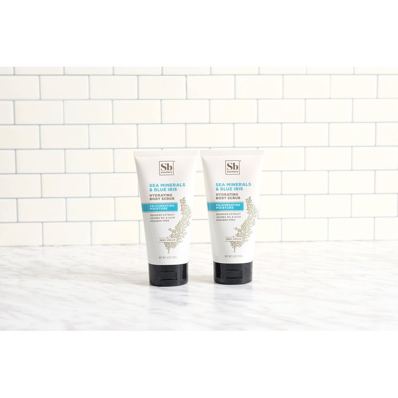 Soapbox Gentle Exfoliating Body Scrub ? Sea Minerals & Blue Iris ? 6oz ? Moisturizing Body Scrub for Visibly Smoother Skin with Coconut Oil and Aloe Vera