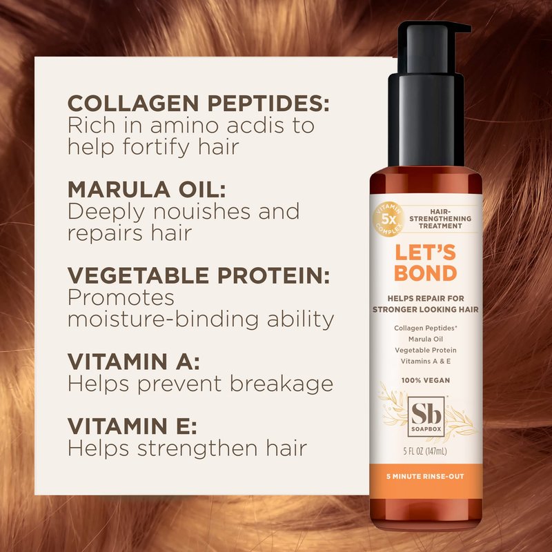 Soapbox Hair Treatment for Dry, Damaged Hair, Let's Bond Hair Treatment with Collagen Peptides to Repair, Prevent Breakage, Nourish and Strengthen Fine, Frizzy Hair, Paraben Free & Color Safe, 5oz