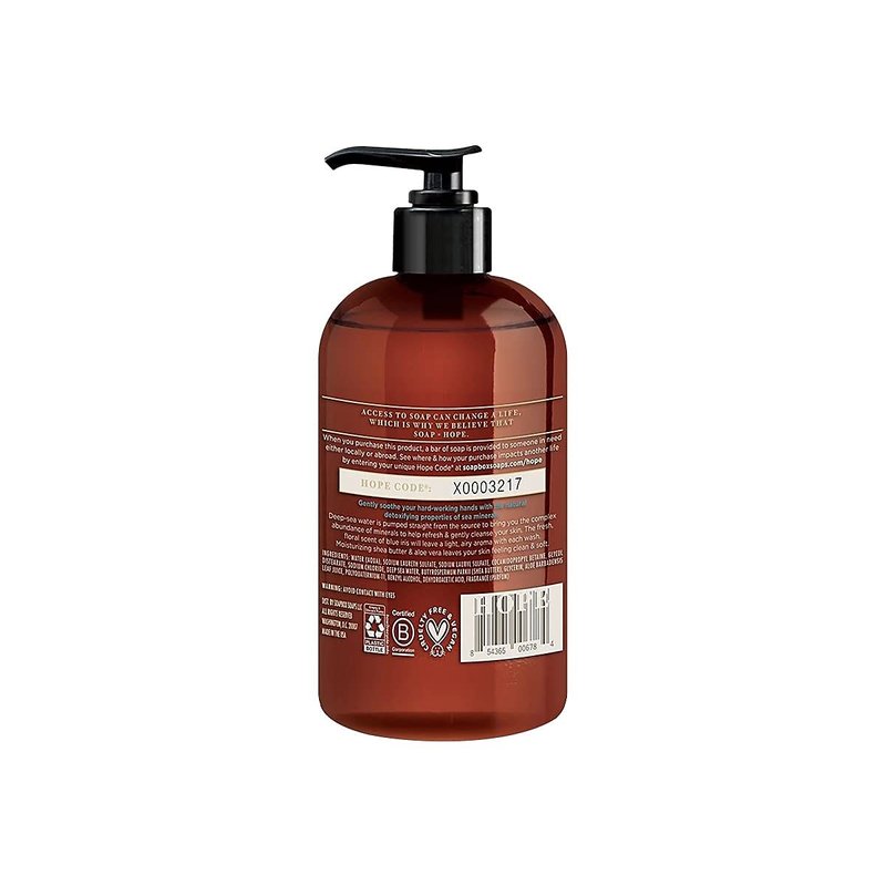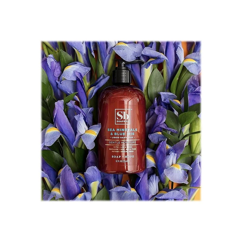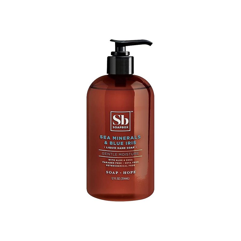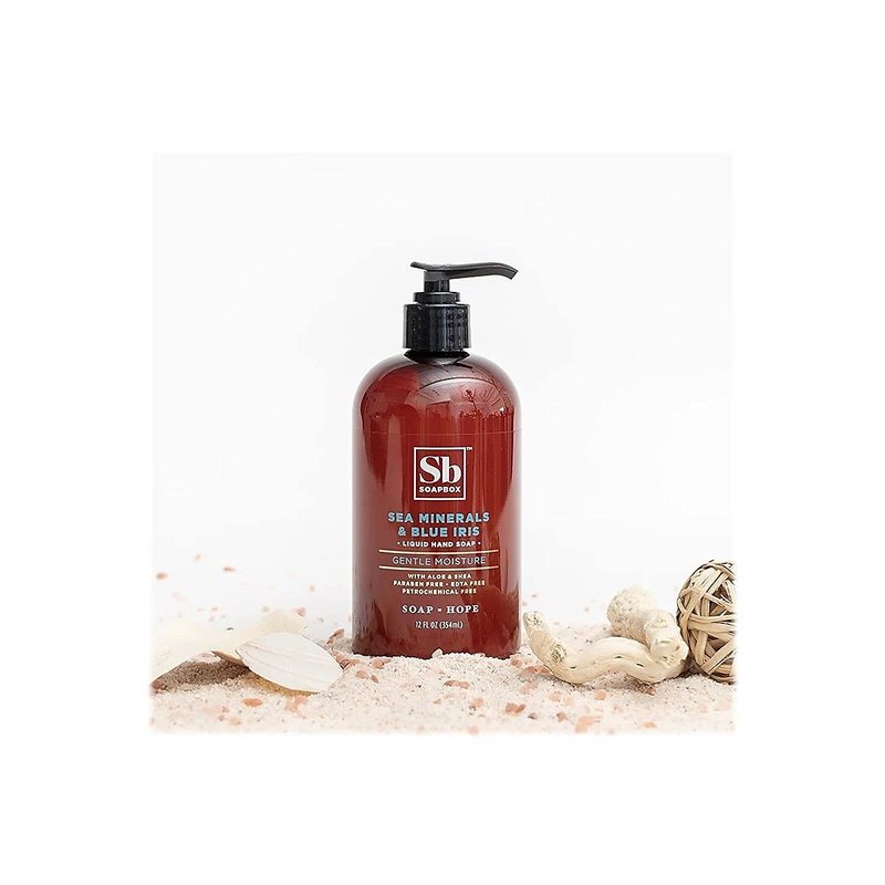 Gently soothe your hardworking hands with the SOAPBOX natural detoxifying properties of sea minerals. Deep-sea water is pumped out straight from the source to bring you the complex abundance of minerals to help refresh and gently cleanse your skin. Paired with the fresh, floral scent of blue iris, this soap will leave a light, airy aroma with each wash. This shea butter and aloe vera blended hand soap will not only leave your skin clean, but also gently moisturized. Net weight of this product is 12 fl. oz.Gentle moisture liquid hand soap. Sea minerals and blue iris scent leaves a pleasant aroma. 12 fl. oz. pump bottle. Contains moisturizers that help prevent your hands from drying. Effectively buffs away dirt. Includes aloe vera to leave skin soft, smooth, and refreshed. Paraben-, EDTA-, and petrochemical-free. With each purchase, Soapbox provides a bar of soap to someone in need either locally or abroad. Change the world -- choose a soap that matters. Because SOAP = HOPE.