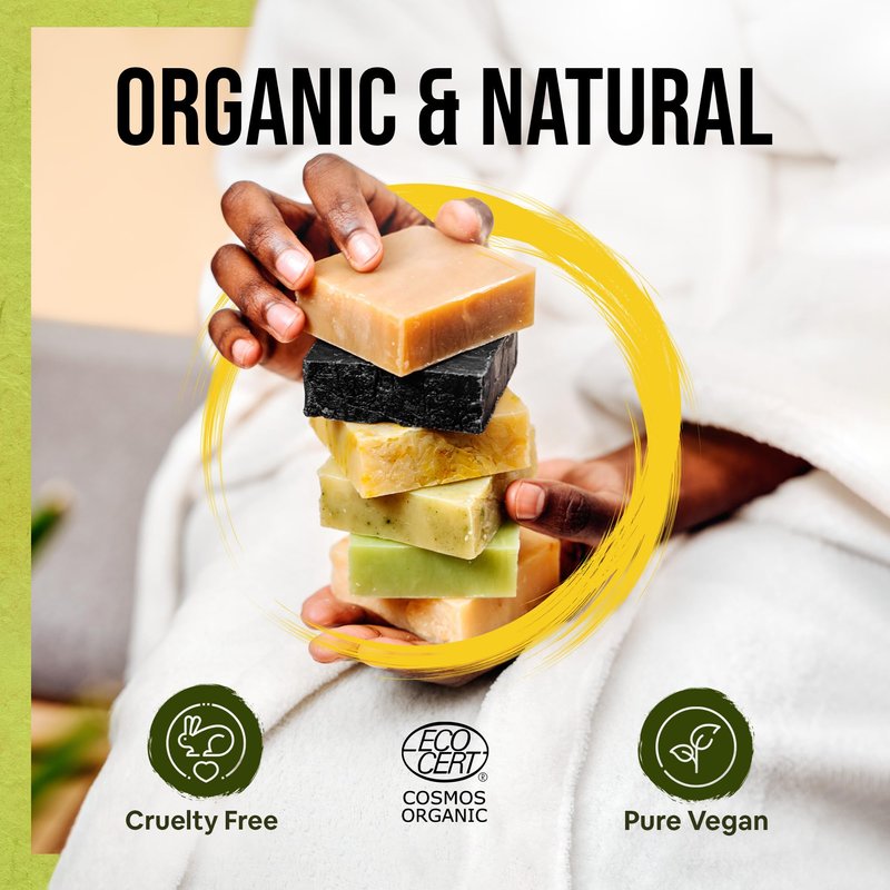 - ORGANIC & 100% NATURAL: Our soap bars are 100% natural and Organic certified by Ecocert Greenlife using the COSMOS Standard