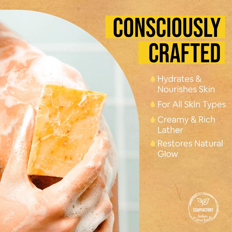 SoapFactory Organic Soap Bar with Turmeric and Lemongrass for Men and Women, 100% Natural Facial Cleanser, Face and Body, Vegan, Handmade, 3.88 ounce